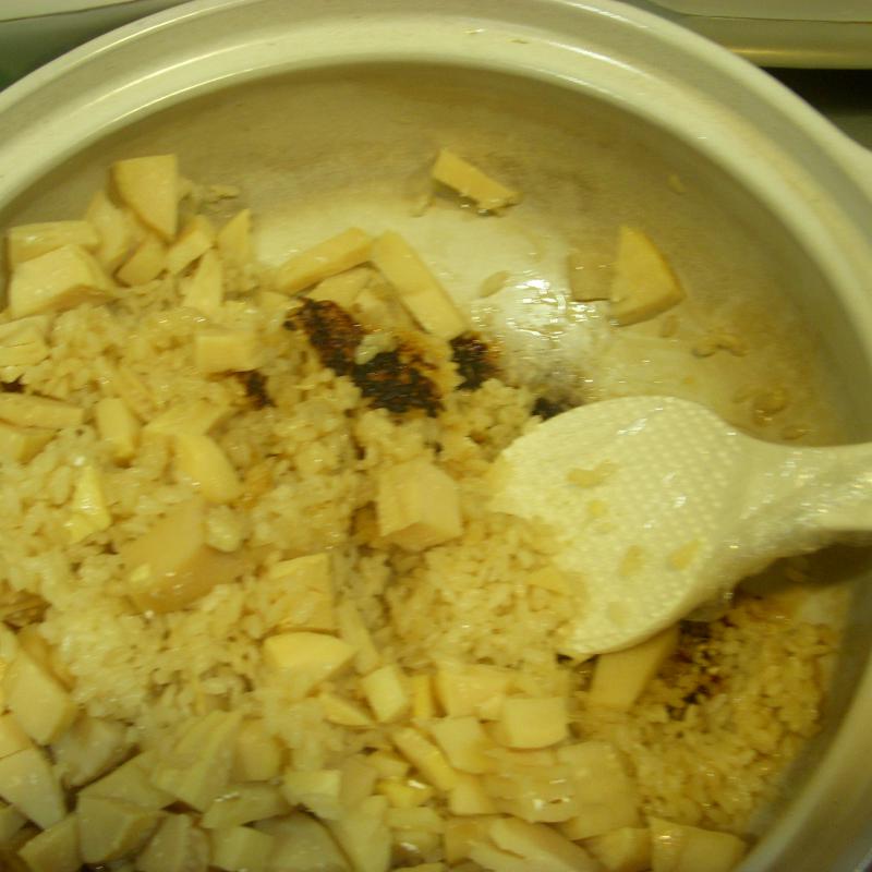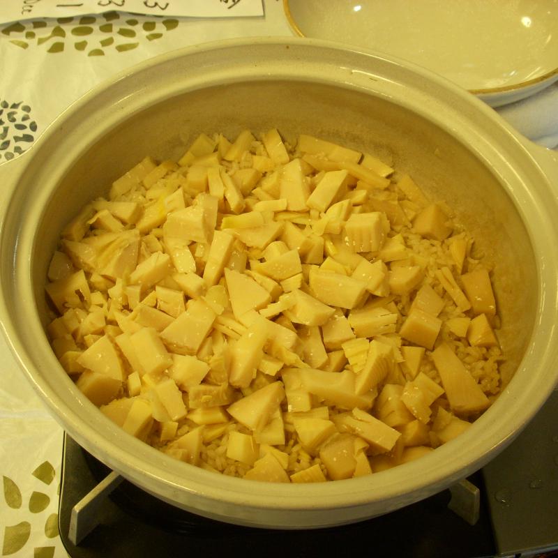 旬の竹の子を使い、目の前で土鍋で炊きました。