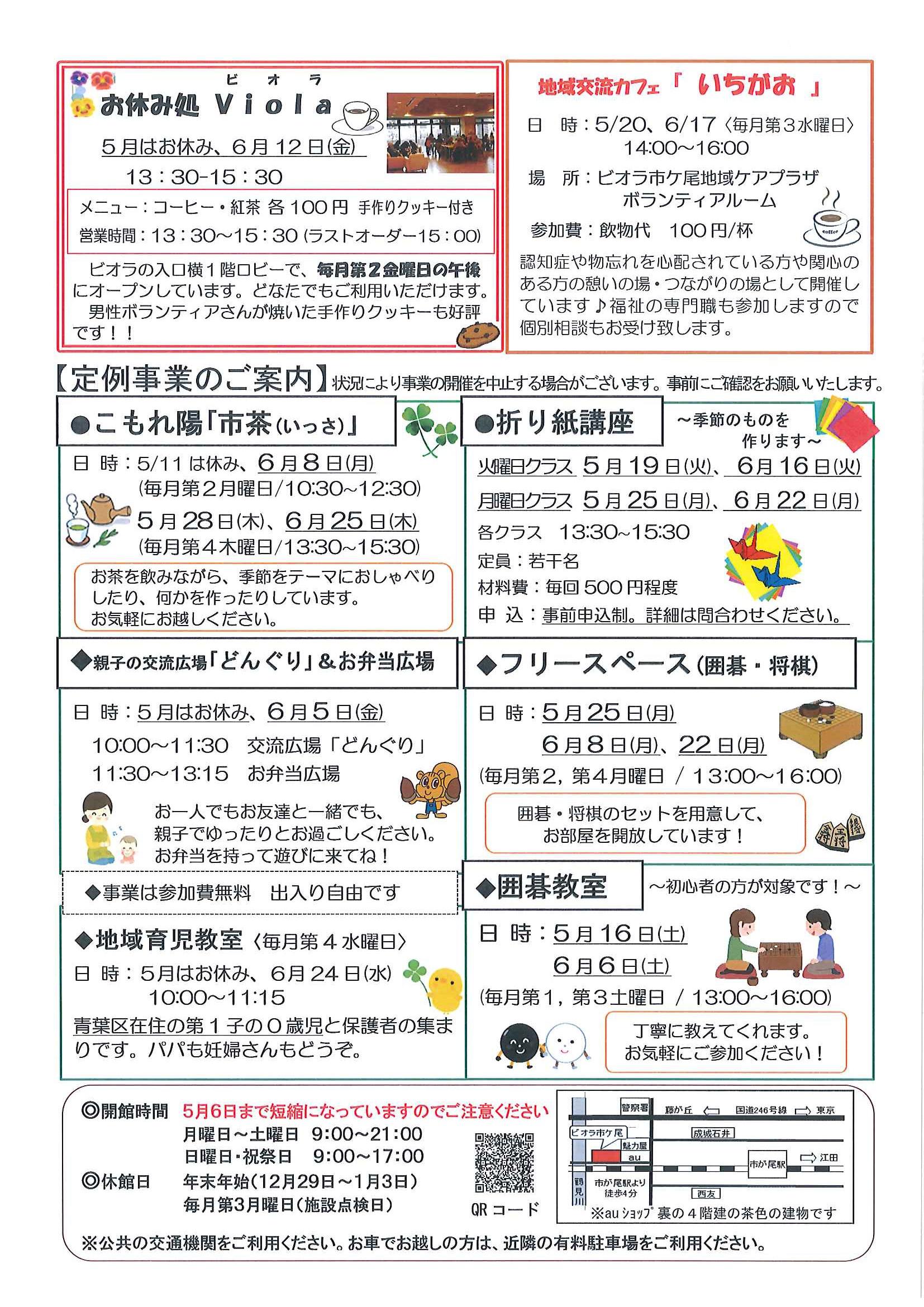 いつもビオラ市ケ尾地域ケアプラザご利用ありがとうございます。