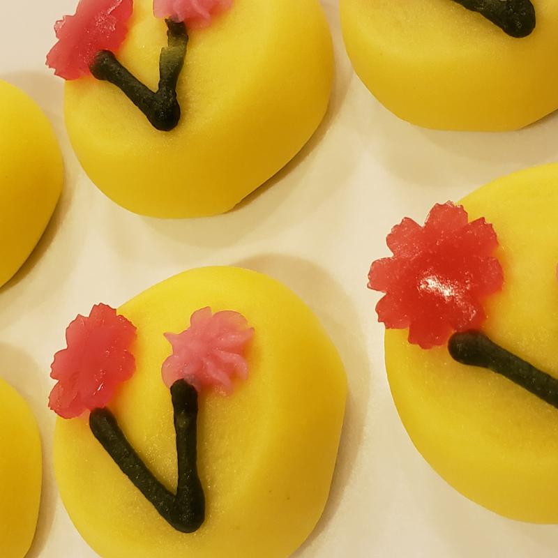 おやつには、カーネーションが飾ってある和菓子を提供。