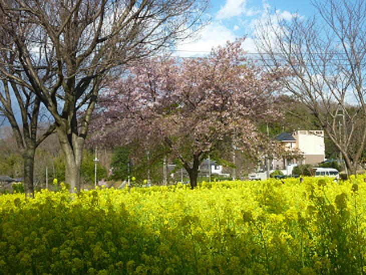 3月9日 川和駅前の菜の花と大漁桜 今年も満開
