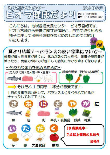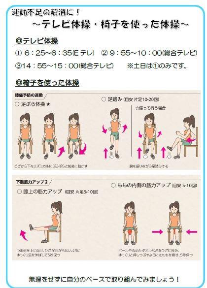 今回は栄養に関する情報と自宅で椅子に座ってできる体操をご紹介いたします。