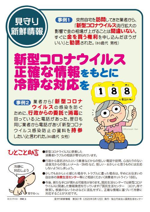 新型コロナウイルスに便乗した勧誘には耳を貸さないようにしましょう。