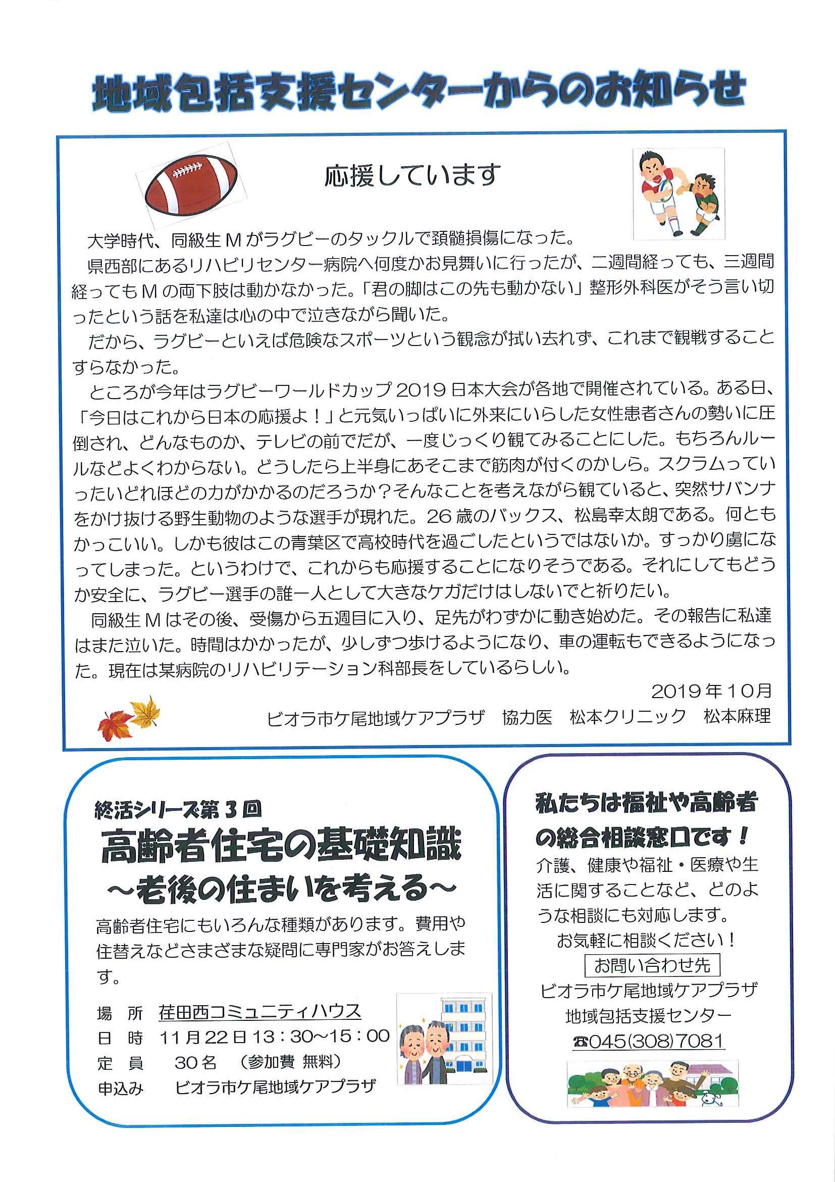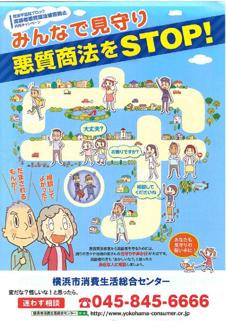 横浜市消費者センターが作成したチラシをもとに、ケアプラザ包括支援センターの社会福祉士の説明を受けながら、サロンに参加いただいた方の体験など語り合いました。