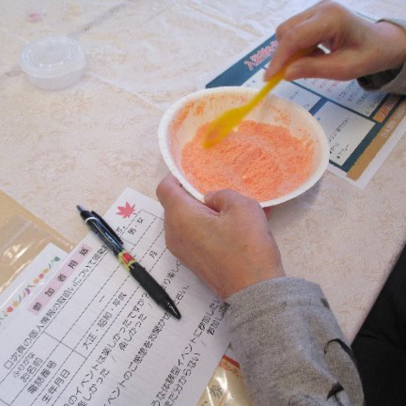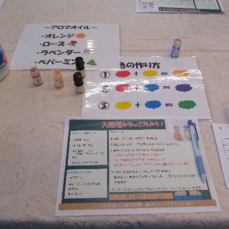 室内はアロマのいい香りで一杯になり、参加者からは、材料をダマにならないように混ぜることが「楽しい~