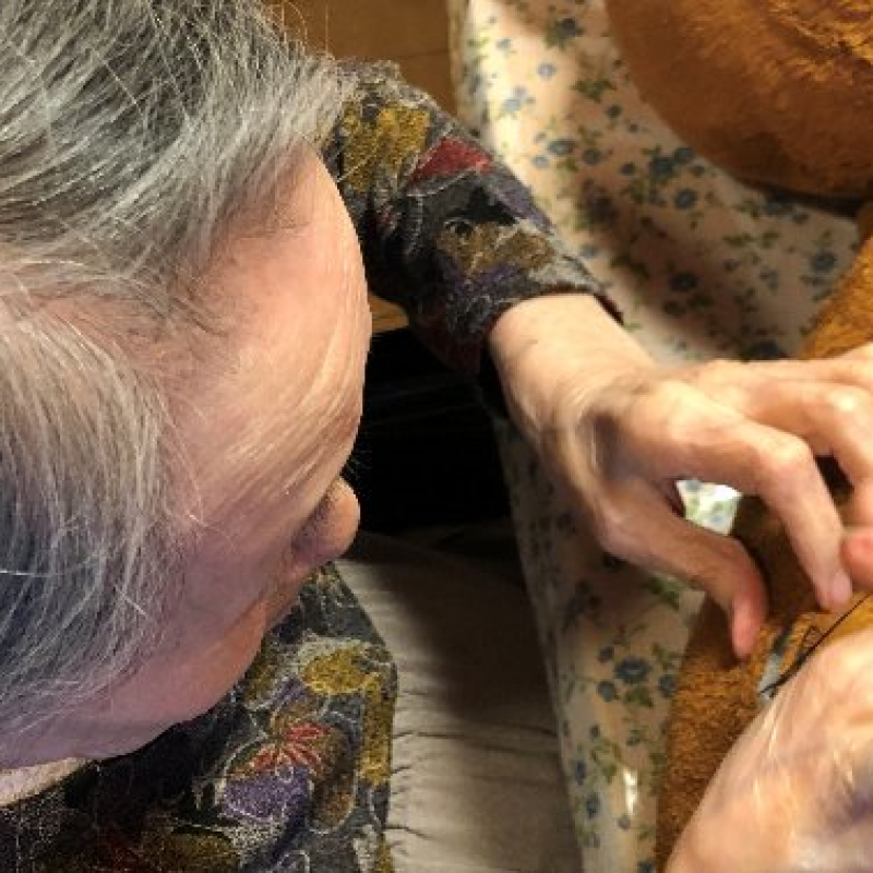 縫い物が出来るのかと半信半疑でしたが、渡してみると頭の油をつけながら(笑)上手に縫って直してくれました。