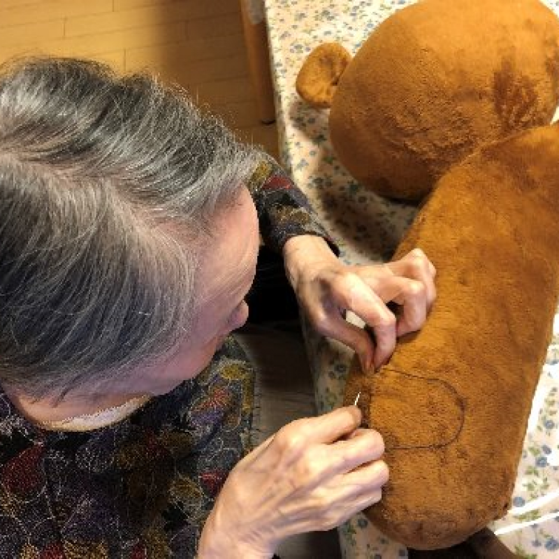 たまたま抱いていたぬいぐるみがほつれているのを見つけ、おもむろに「針と糸ちょ~だい!」。