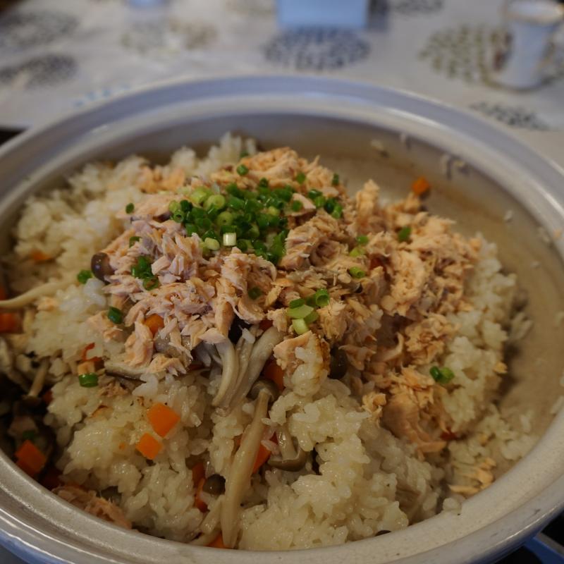 秋ということで秋鮭ときのこを使用し、『 秋の炊き込みご飯 』を作りました。