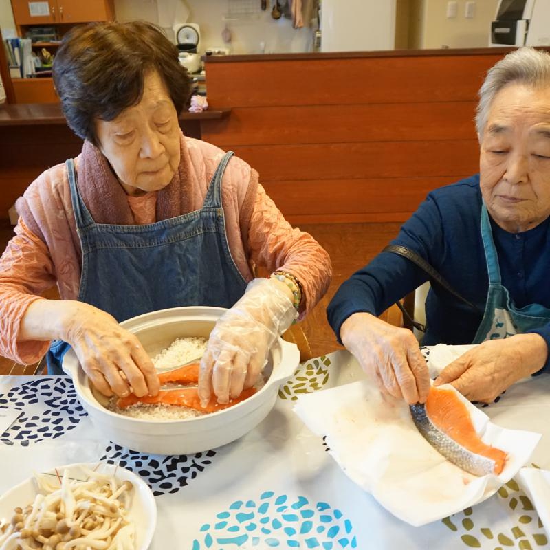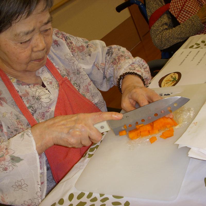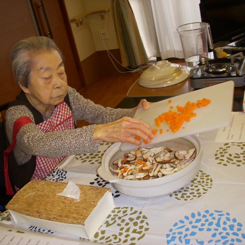入居者さまに野菜のカットや具材を土鍋に入れたりと積極的に参加いただきました