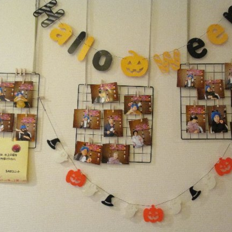仮装されたご入居者さまの写真も飾っています。