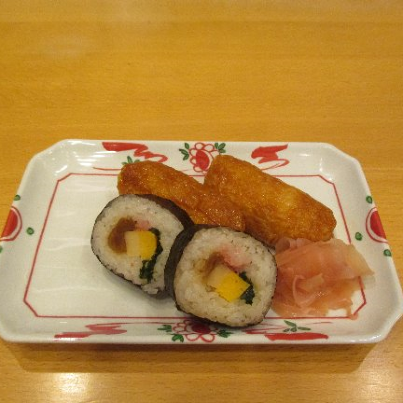 いなり寿司と太巻きが2個ずつ盛り付けられ、普段はお粥の方も、お寿司はご飯で食べる方もいました。