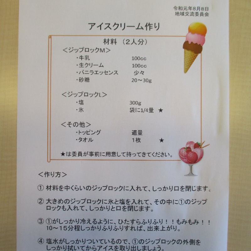 8/8(木)、地域交流委員会ではアイスクリーム作りを行いました。