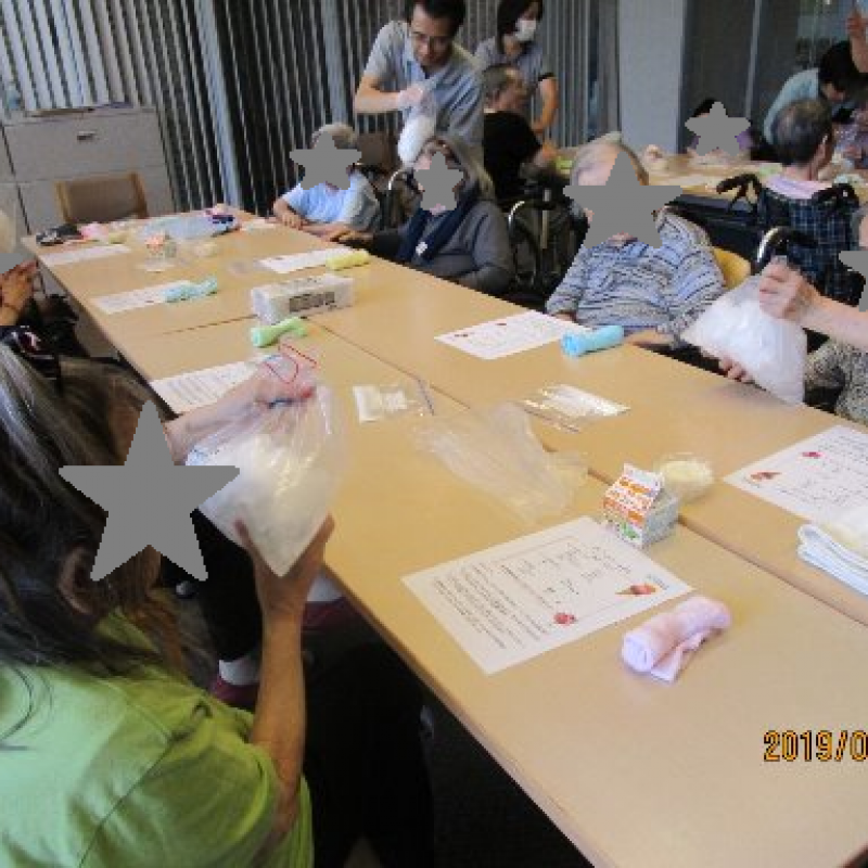 一箇所に大勢を集めて行うのではなく、各ユニットを廻っていただき少人数で行いました。