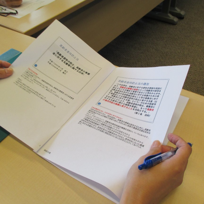 高齢者虐待についての定義や法律を学んでいます。