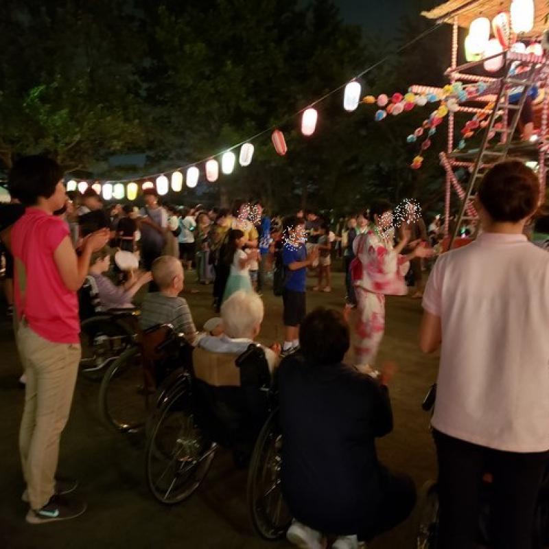 盆踊りの曲は青葉区音頭やドラえもん音頭、その他5曲ほど流れましたが知らない曲のため