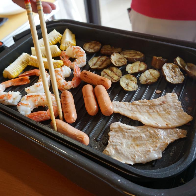 皆様の前でお肉や野菜を焼くとフロア中にいい香りが漂い、味も満足していただけました