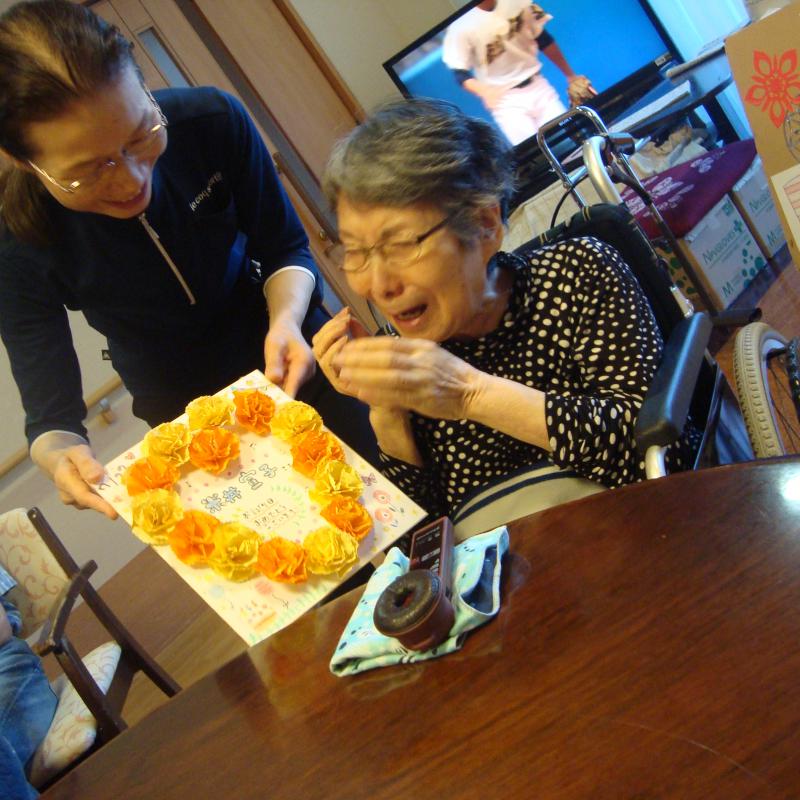 お祝いされたご利用者さまはとても涙を流され、喜ばれている様子でした