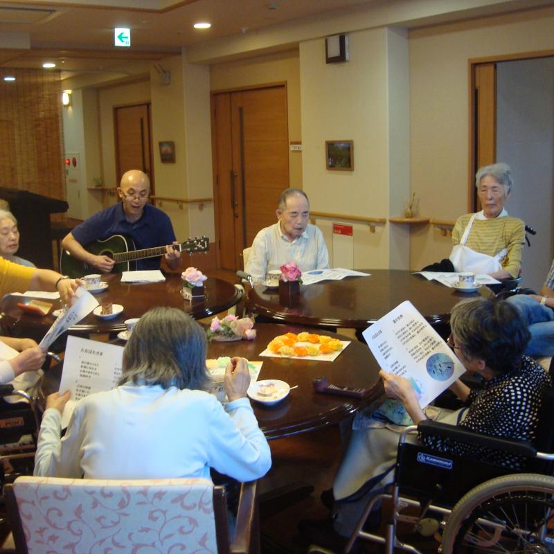 誕生会の後はユニットの皆さまで職員の楽器演奏に合わせて