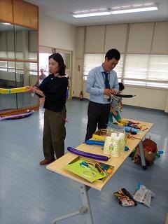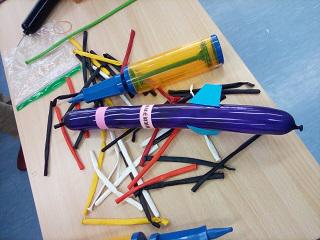 二階は『都筑親子科学クラブ』さんが風船ロケットや割りばしでっぽう作りを子ども達とおこなっていました。
