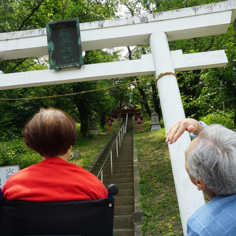 車椅子に乗り、体の片側が動かしづらいため、片足でこぎながら受付で煙草を受け取り